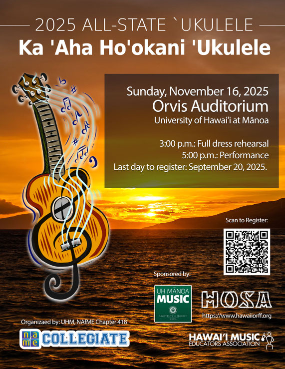 After a long six years, the NAfME #418 chapter is excited to announce that we are going to hold the second All-State `Ukulele (Ka ‘Aha Ho‘okani ‘Ukulele) on November 16,